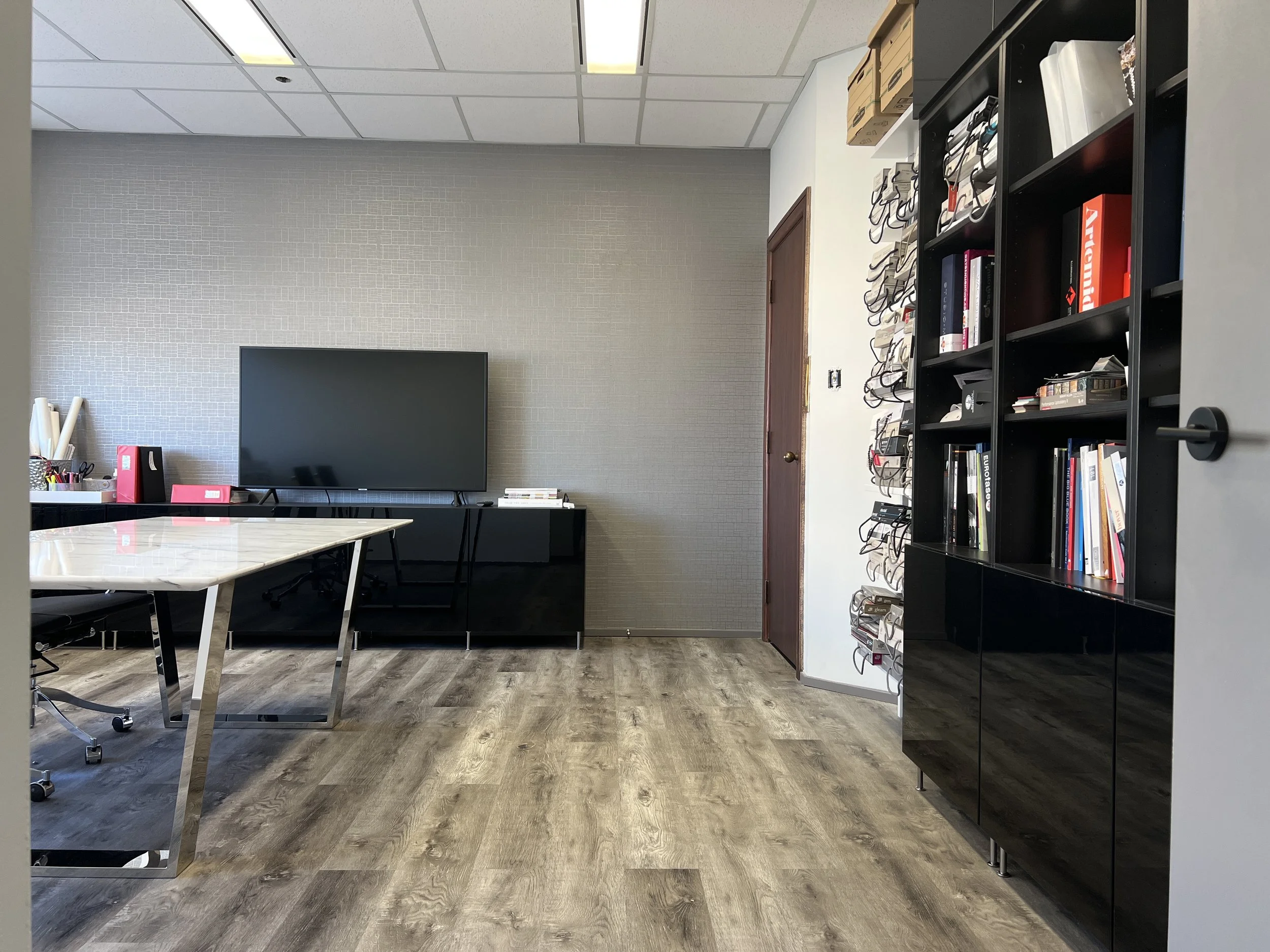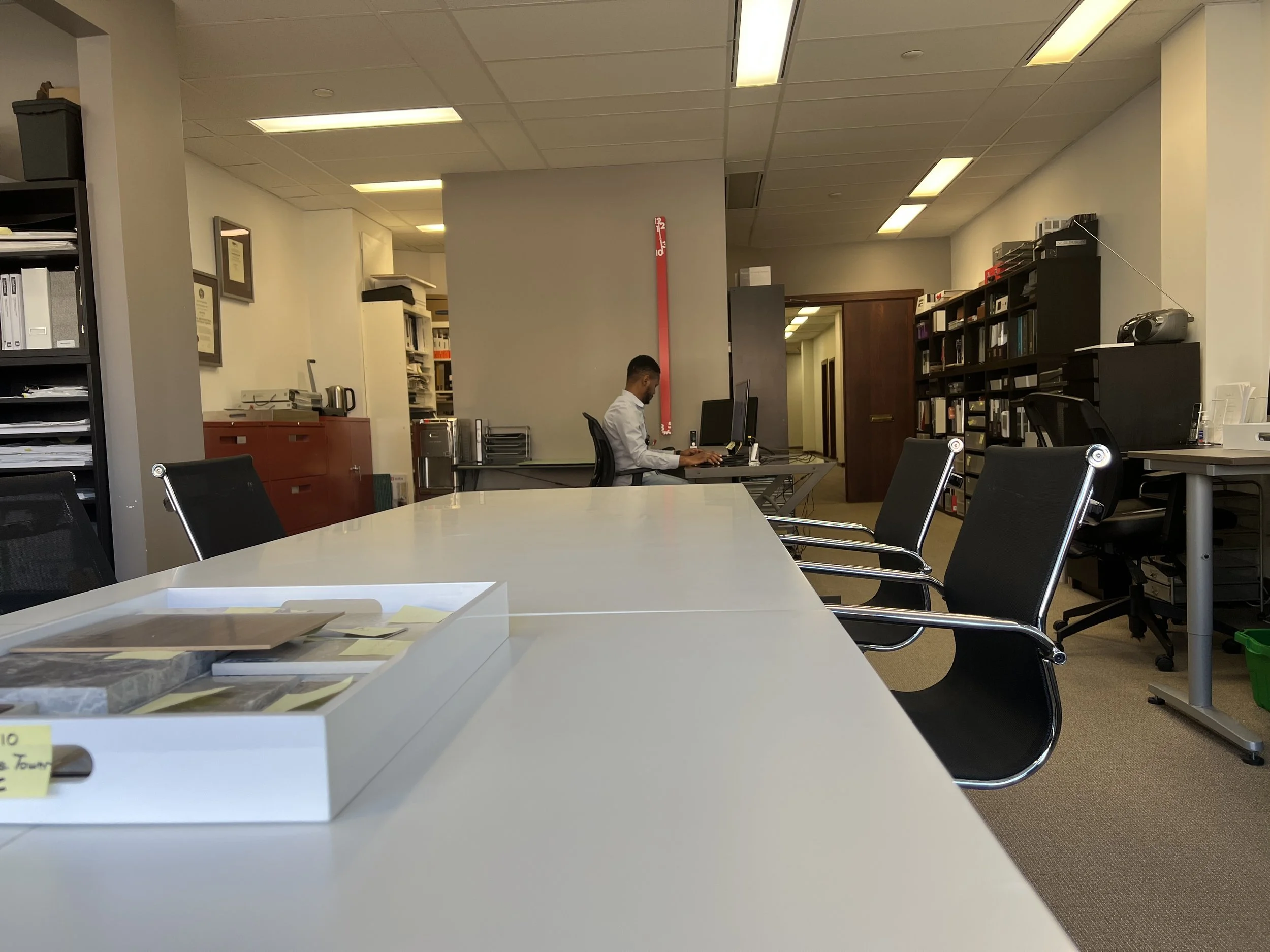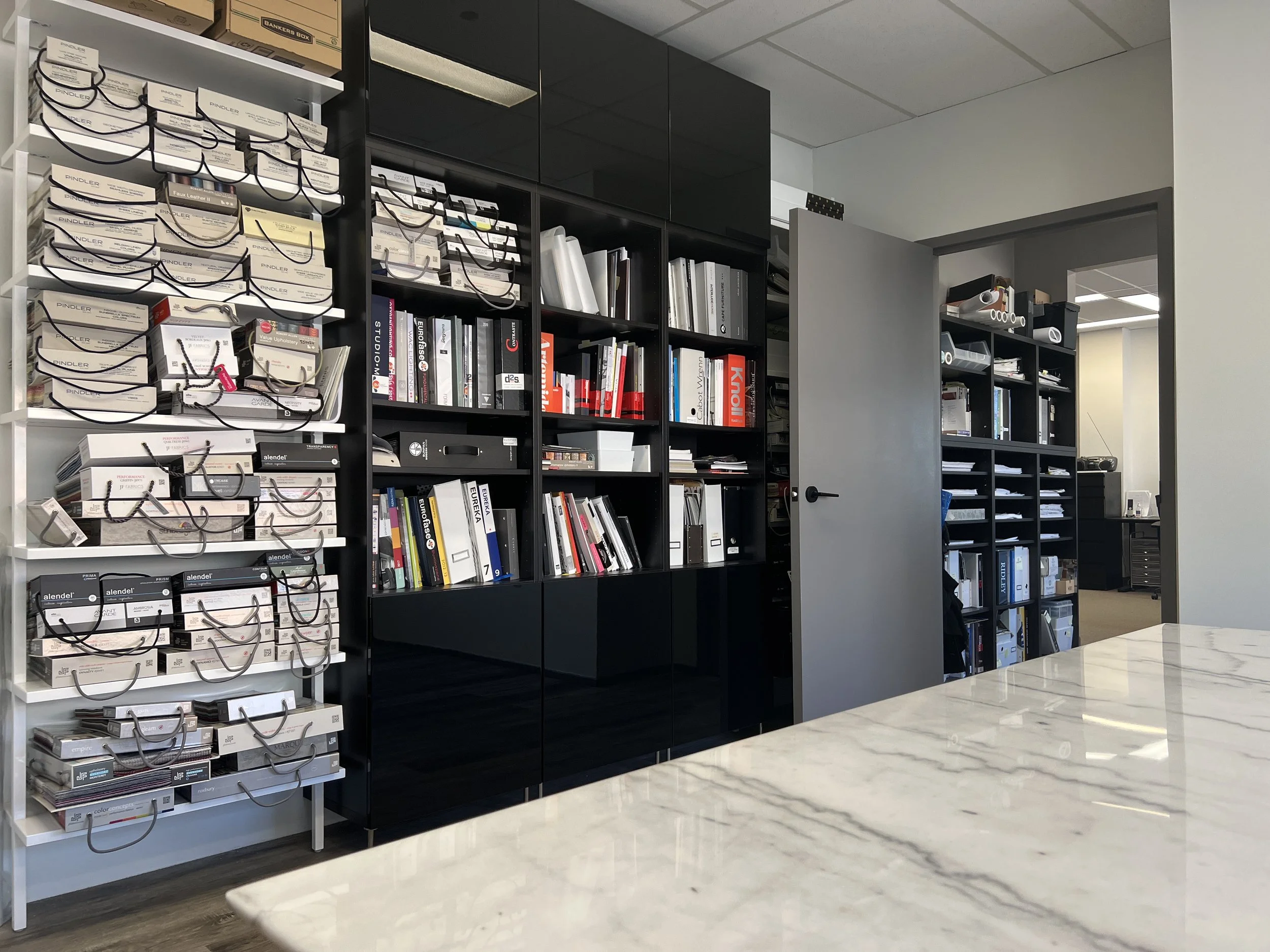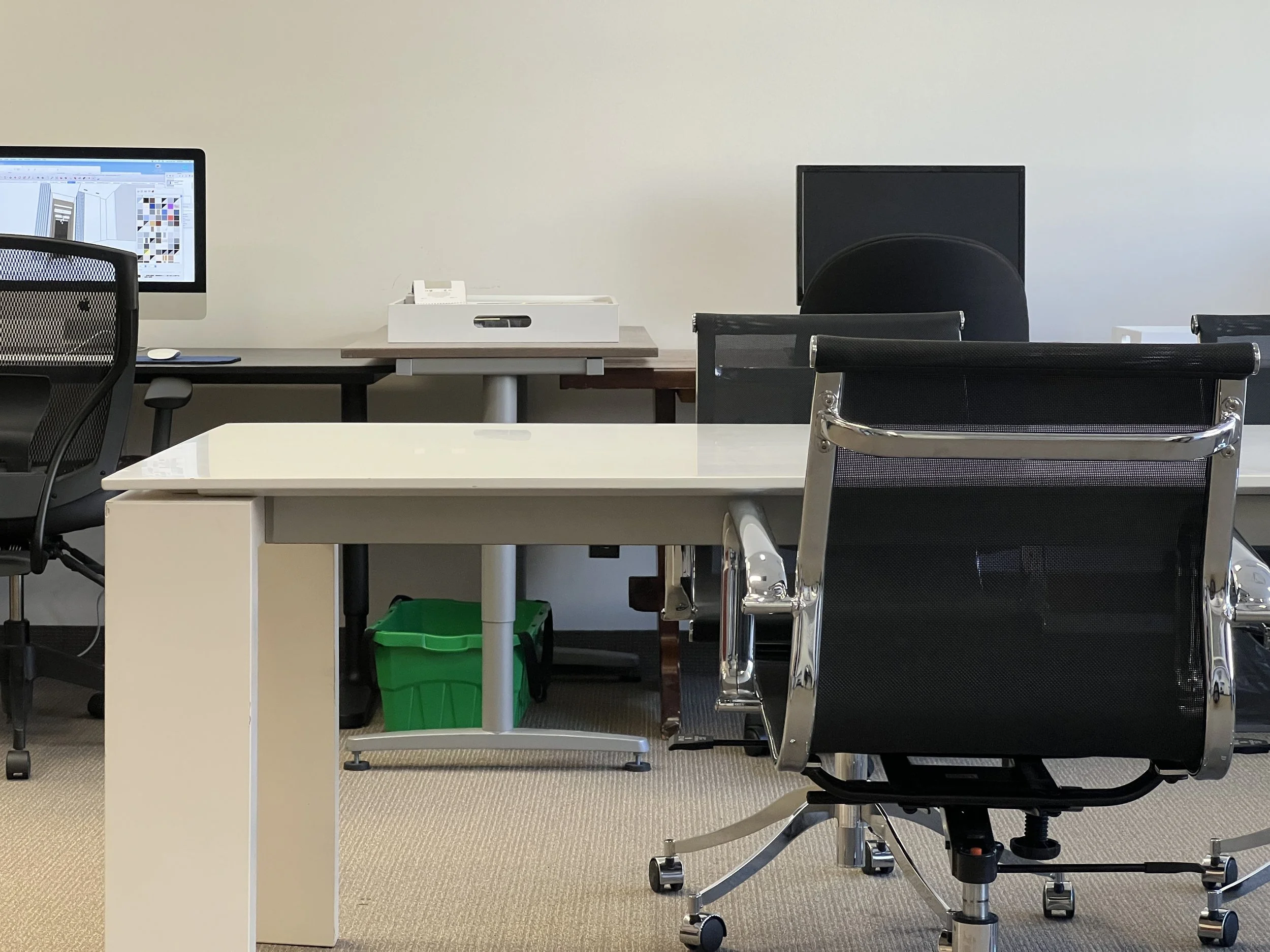 All desks are in a quiet, open-concept office with shared access to a specialized interior design materials and resources (constantly changing, photos may not illustrate latest samples).
